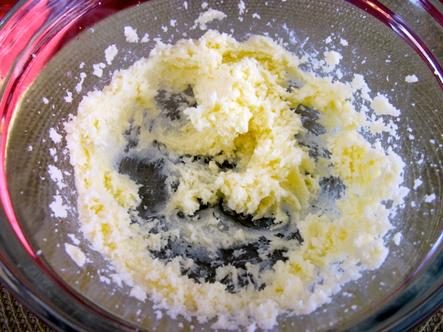 Cream the butter and sugar with an electric mixer