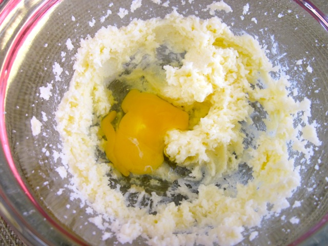 3. Cream the butter and sugar with an electric mixer until light and fluffy. Add the egg, beat until combined.