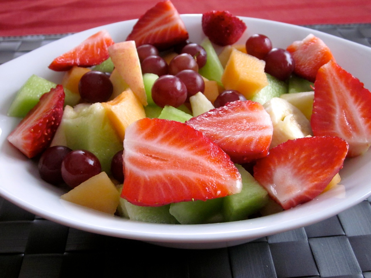 I love eating fruit salad. It’s is the only thing I can make five days a week, without getting tired. I love the crunchiness of the apple, the tartness of strawberry and the juiciness of the melons combined with the sweetness of bananas and grapes. I also love the way the colours blend. I always look forward to assembling the fruit salad. There’s nothing like a huge bowl of fruit to start off the day!