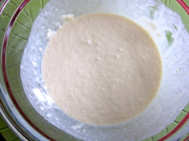 - Heat frying pan. Using a silicon brush, lightly brush the pan with melted butter or oil. Pour tablespoons of the batter into the pan. Cook until bubbles appear on the surface. Turn over and cook the other side until slightly browned.