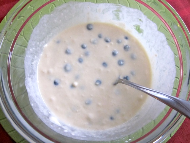 - Gently fold in the blueberries.