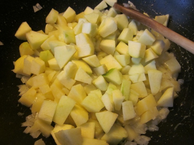 Add the apples and continue sweating another 3 minutes