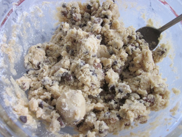 3. Stir in the sifted flour, chocolate chips and sultanas, until combined.