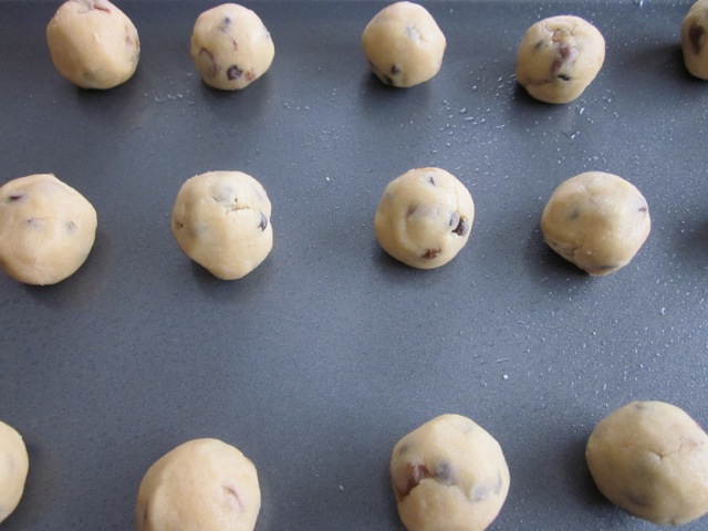 4. Roll rounded teaspoons of mixture into balls. Place balls 3-4cm apart on a greased baking sheet.