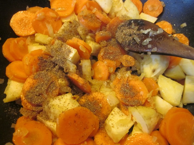 Add the carrots and sweet potatoes and cook for 4 minutes.