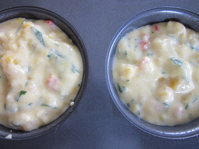 Spoon the batter into prepared muffin pan and bake 25-30 minutes or until golden on top.