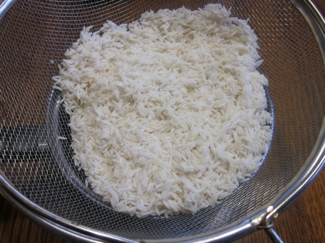 - Soak rice for 30 minutes in cold water, drain thoroughly.