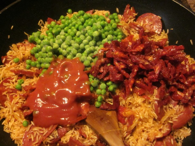 Spicy Chorizo Rice with Peas and Sun-dried Tomatoes
