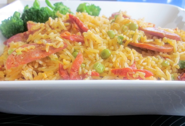 Today, we start with Spicy chorizo Rice. You can substitute the Chorizo for any other favourite sausage or meat. I leave it to your imagination, or you can eliminate it altogether and make a vegetarian rice. Most times, my rice is vegetarian..