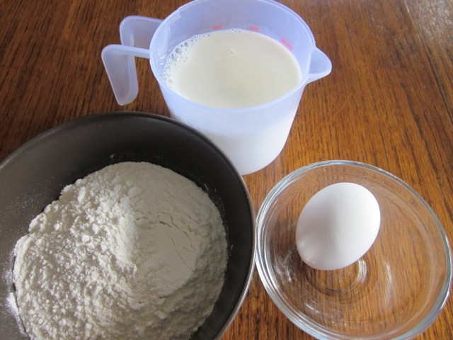 - Whisk together the egg and milk. Pour into the well and using a wooden spoon or a whisk, gradually draw in the flour into the middle until a smooth batter is formed- do not over mix otherwise you will end up with tough crepes. Cover and set aside for 30 minutes.