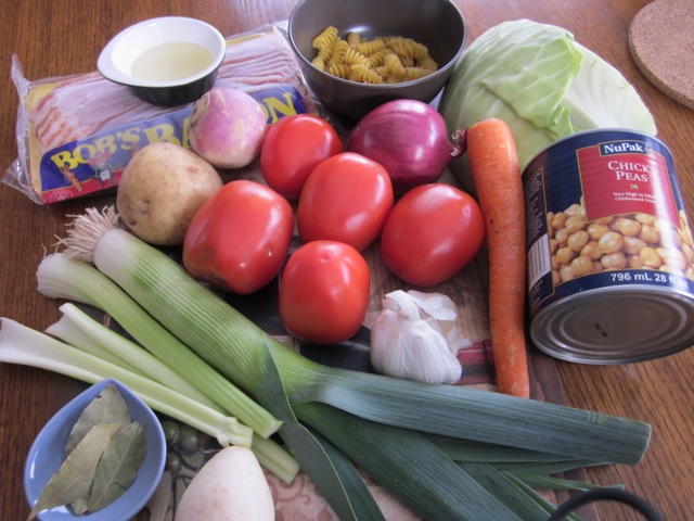 Minestrone is one of our mainstays. As you say, it can consist of almost anything – just be sure to have beans and grated Asiago cheese.