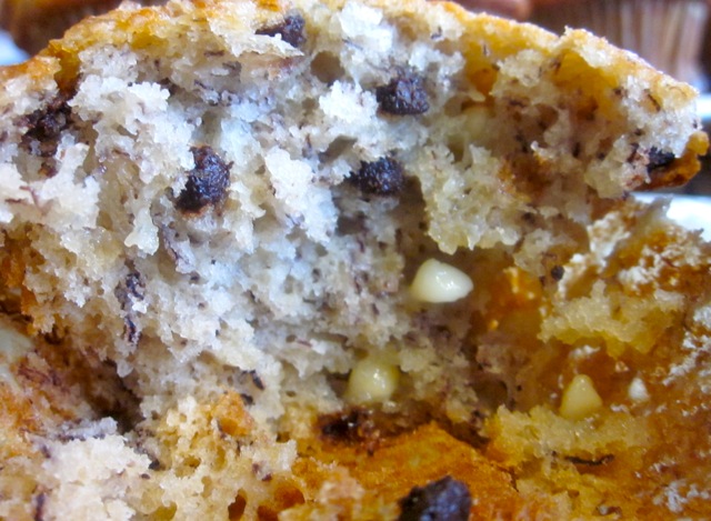 1. I made these and after tasting one, there was no going back. I absolutely loved the banana in a muffin ( a great idea by the way ) and the white and milk chocolate chips. It was heaven in my mouth. Definetely going to be making these a whole lot more!