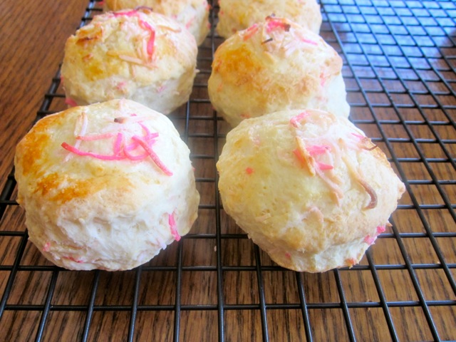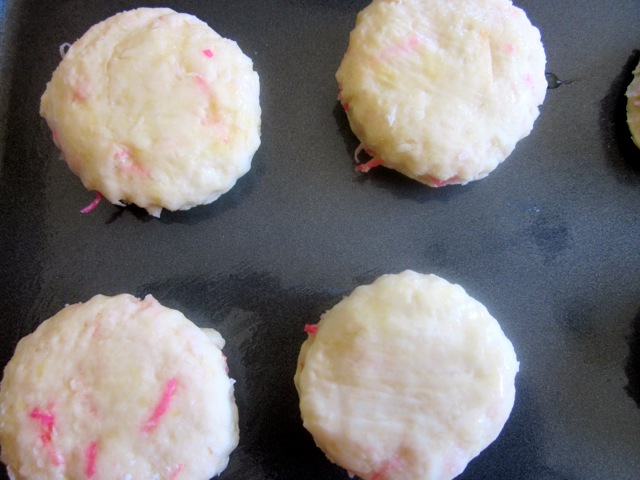 I was shopping at the Bulk Barn Store and I found them. They call them sweetened shredded rainbow coconut. They are pink, yellow, orange and white. I loved them so much, so I decided to make some scones, with them. Don’t ask me why they are called rainbow, I saw only four colours, not seven, but still I loved them and made some scones. I also added my favourite ingredient, buttermilk.