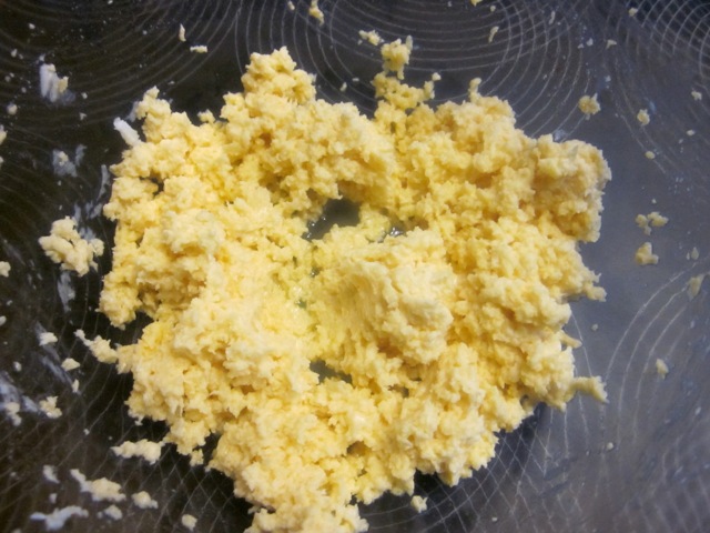 Butter Cake-My favourite pastime_0080Then beat the  butter  vanilla and egg yolks together until light and fluffy. The mixture will look more like scrambled eggs, but don’t worry.