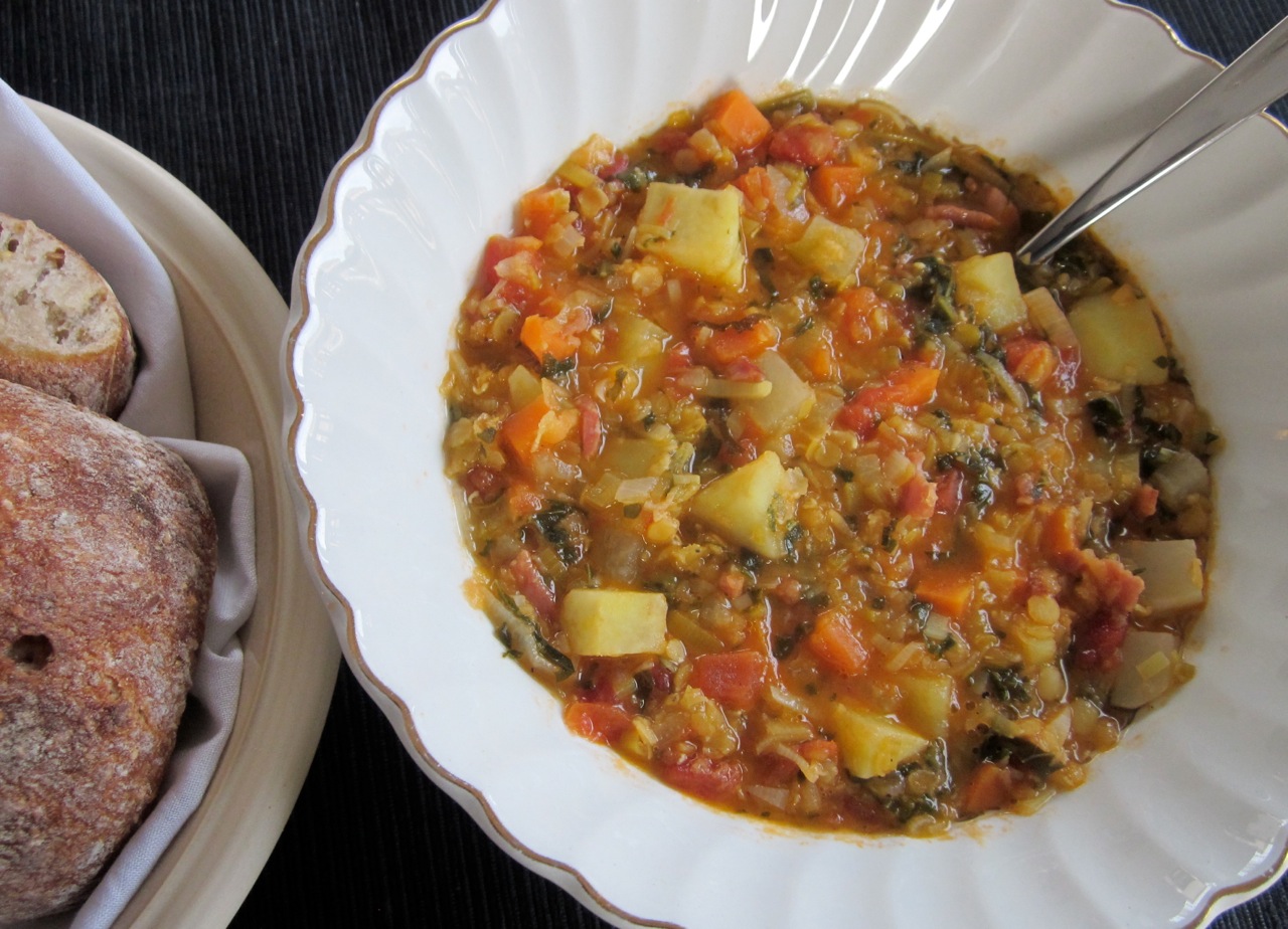 That looks lovely, I’d stick chorizo in it (because I would stick chorizo in loads of dishes), the bread looks amazing too.