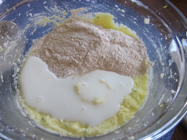 Zucchini Apple Cake with Cream Cheese Frosting myfavouritepastime.com_1774Stir half sifted flour, alternately with the buttermilk and then the rest alternating with buttermilk.