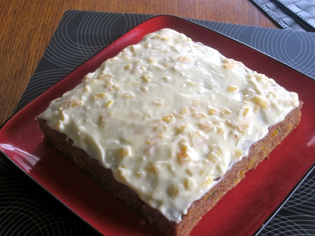 Zucchini Apple Apricot Cake with Cream Cheese Frosting myfavouritepastime.com_1907Spread the frosting on the cake.