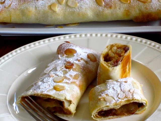 • Please note that oven temperatures are given as a guideline only. You may need to add or reduce the suggested temperature depending on your oven. I baked the strudel at 400°F (200°C) for 26 minutes.