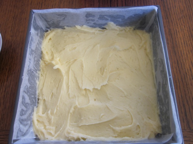 Date Cake with Cherry Almond Topping myfavouritepatime.com_0793Spread half the mixture evenly into prepared tin.
