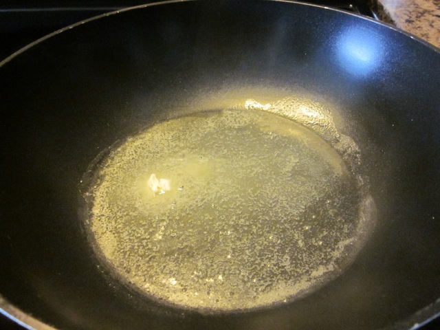 Melt butter or margarine, in a large saucepan (or add sunflower oil).
