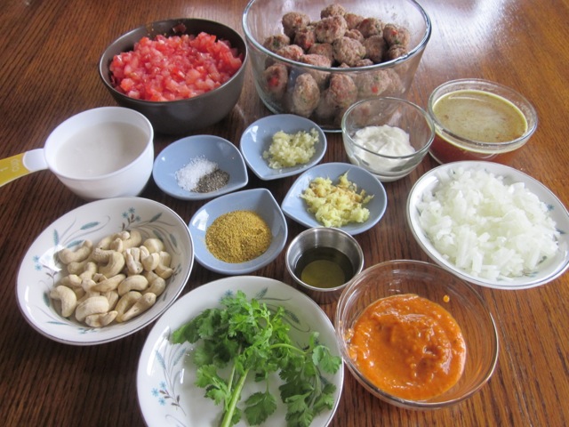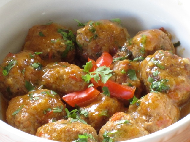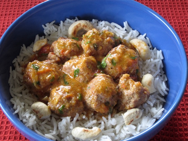 - Add the meatballs to the sauce, stir carefully to coat and simmer in the sauce for 20 minutes or until meatballs are cooked through. Adjust seasoning. Add the yoghurt and coriander, stir and serve immediately with some steamed basmati or other long grain rice. Garnish with cashew nuts and some coriander leaves.