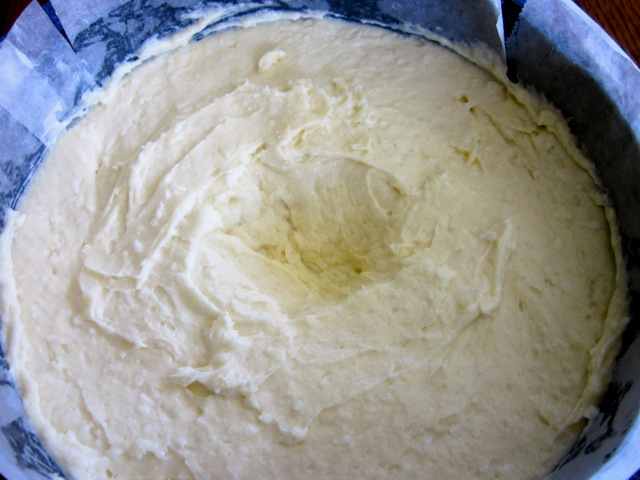 Pour the mixture into the prepared pan (tin). Bake at 350° (180°C) for 1-1¼ hours or until golden and a skewer inserted in the middle of the cake comes our clean. (I baked the cake at 350°F (180°C) for 1 hour 10 minutes.)