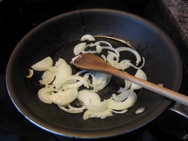 Curried Rice and Lentils myfavouritepastime.com_8184Meanwhile, cut one large onion into thin moon slices and fry the onions until crisp and golden brown. Use to top the rice.