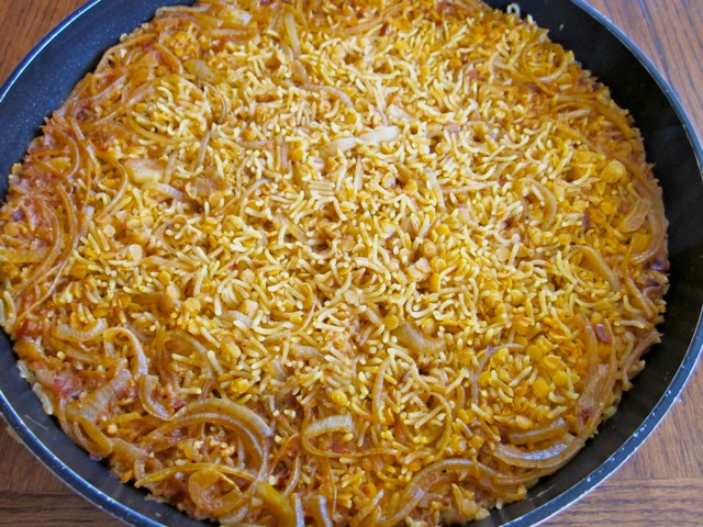 1. This rice was extremely tasty esspecially with the onions, the texture was chewy and went well with water as everything does thanks for the recipe.