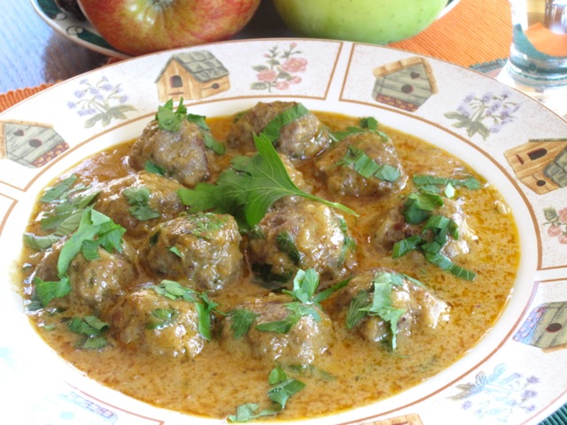 5. Add the meatballs to the sauce, stir carefully to coat and simmer in the sauce for 15-20 minutes or until meatballs are cooked through, stirring form time to time. Adjust seasoning and add chopped cilantro. Serve with steamed basmati rice and some vegetables on the side.