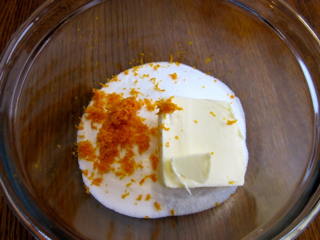 Combine butter, rind (zest) and sugar.
