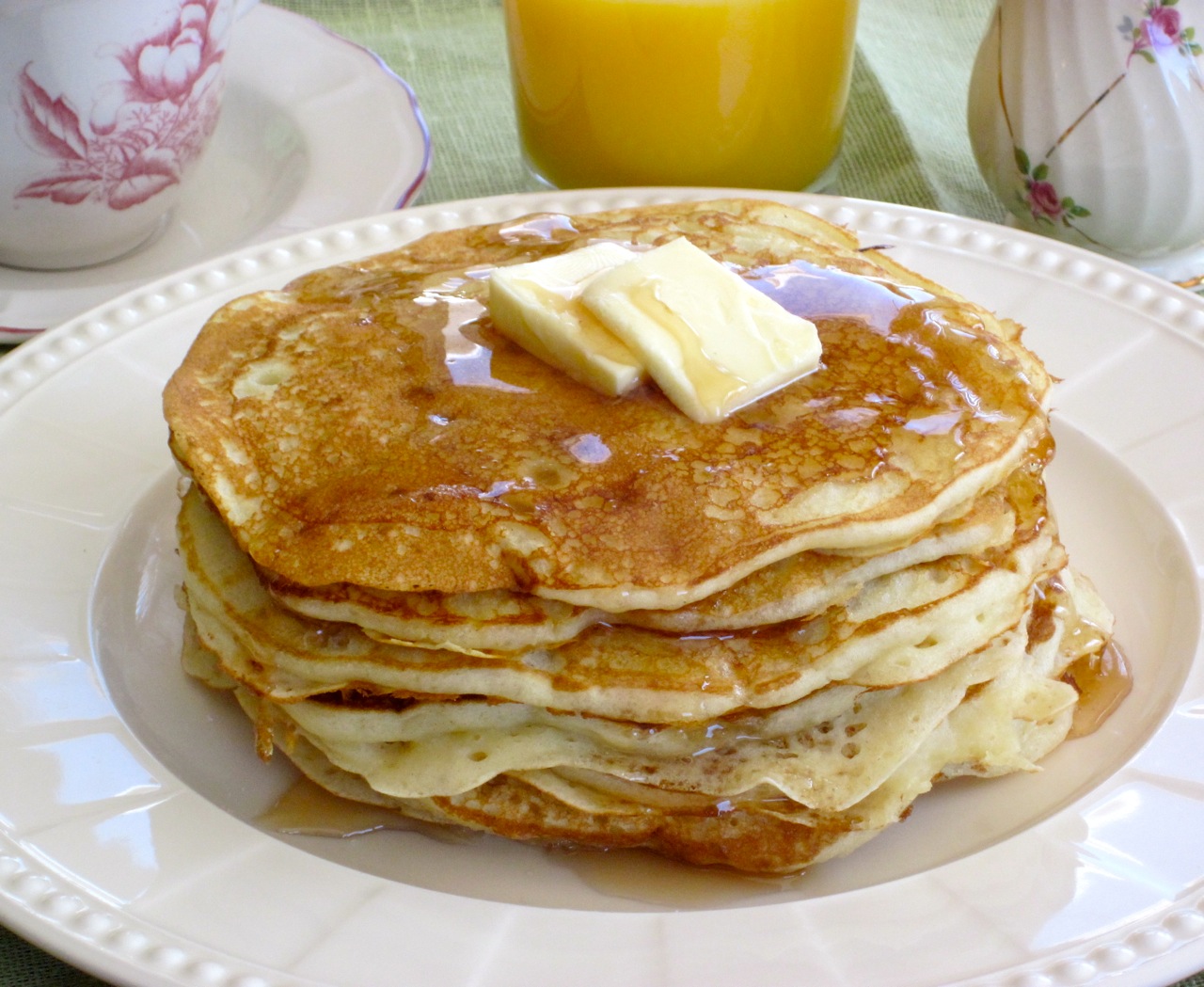 and butter or whatever pleases you. These pancakes are fluffy and delicious!