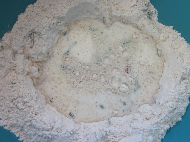 Add the parmesan, garlic, sun-dried tomatoes and basil and stir to mix. Make a well in the centre.