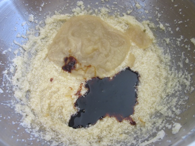 2. Cream butter and sugar with an electric mixer until light and fluffy. Beat in apple sauce in two batches, adding the molasses with the second batch.