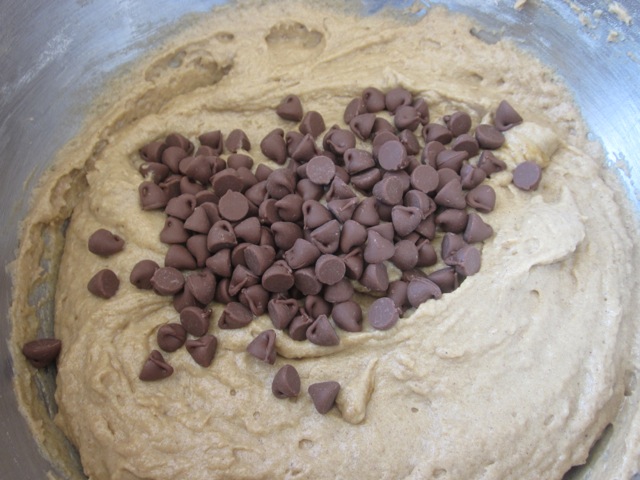 Spicy Chocolate Chip Apple Muffins myfavouritepastime.com_0584Fold in half the chocolate chips.