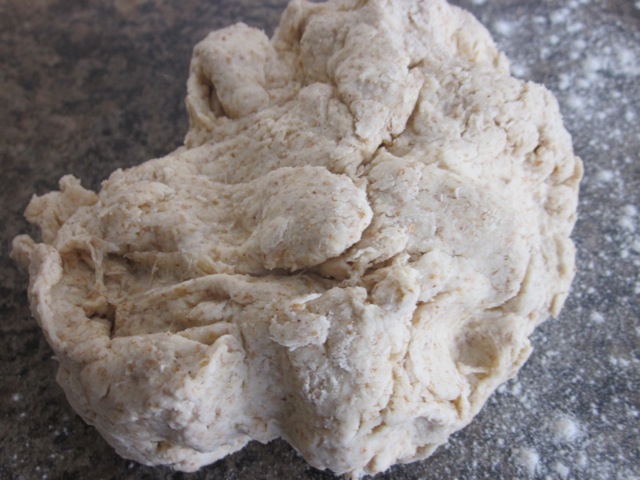 Turn the dough onto a lightly floured surface and knead briefly and lightly for about 5 seconds until it comes together. (Do not over handle the dough otherwise the bread will become tough).