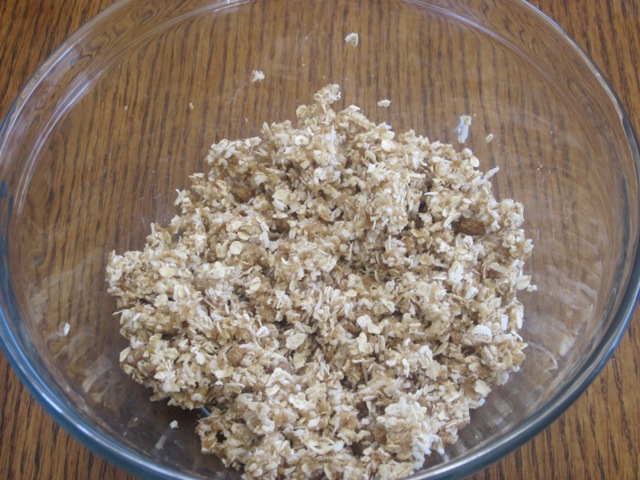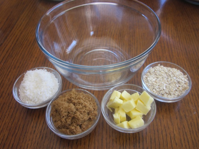 For the topping mix together the oats, sugar, coconut and cinnamon.