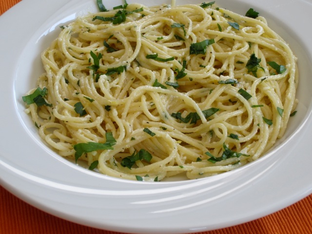 Pasta is, hands down, my favorite carb–I’d eat it every meal, given no concerns about weight, etc. I like the simplicity of this recipe–no need add anything else at all!