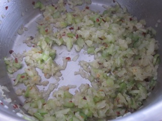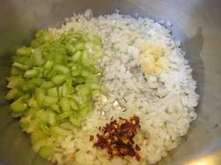1. Heat the olive oil in a saucepan (skillet) over medium heat. Add onion, celery, garlic and chilli flakes (if using) and cook, stirring until onion is soft (5-7 minutes)