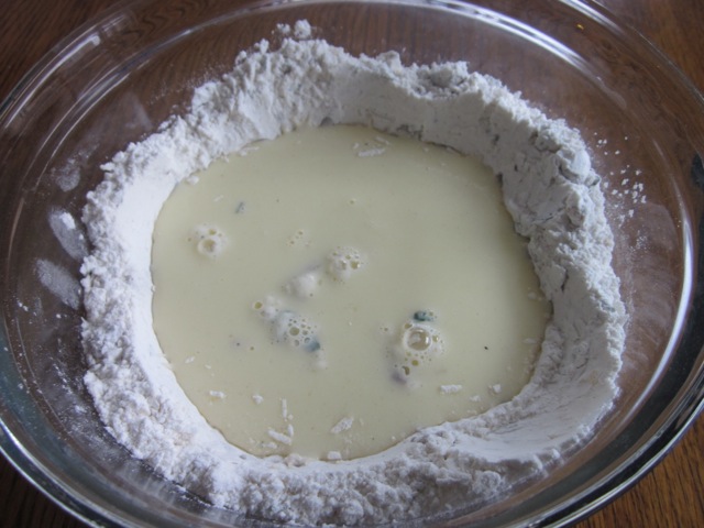 2. Whisk the eggs and milk and pour into the well, stirring until just smooth (do not over mix).