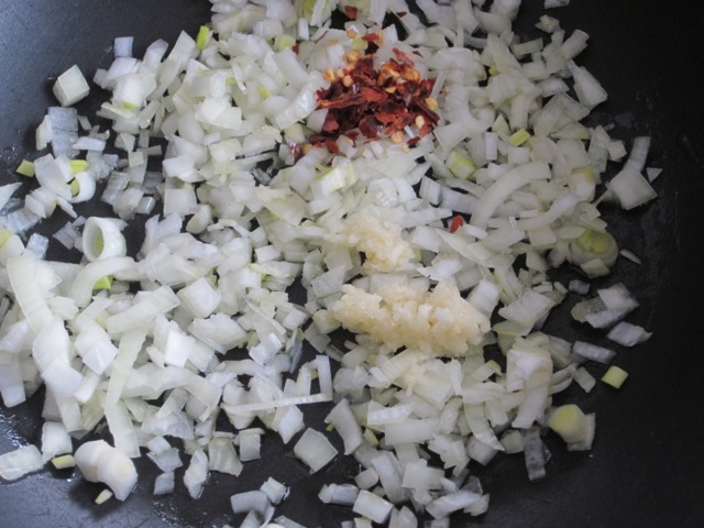 Basmati Rice with Spinach and Parmesan myfavouritepastime.com_2021During the 10 minutes standing time heat the extra olive oil in a different pot. Add onions, garlic and chilli flakes or chilli, if using and fry gently until soft (5-6 minutes).