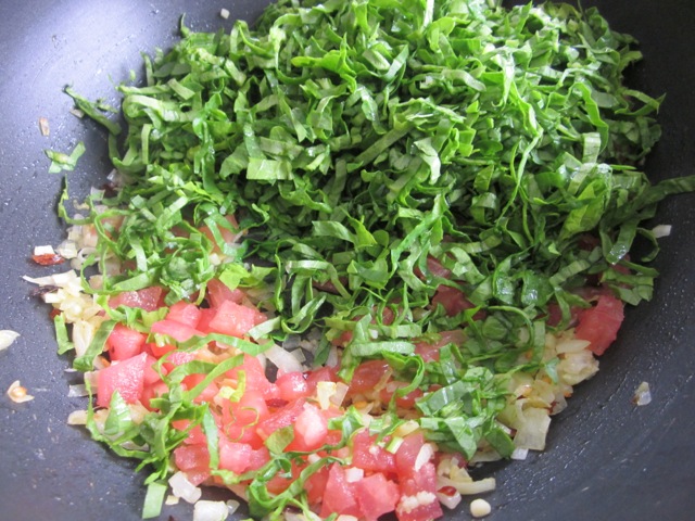 Basmati Rice with Spinach and Parmesan myfavouritepastime.com_2024Add tomatoes and spinach and cook until spinach is just wilted (2-4 minutes). Season. (i had a lot of left over Swiss chard, which I used instead of spinach)