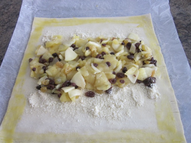 Easy Apple Strudel myfavouritepastime.com_0168Place half the apples in the centre of the pastry. Brush edges with egg
