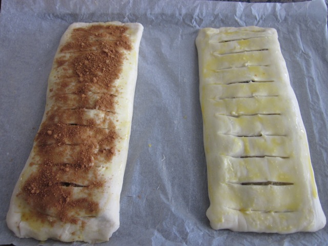 Easy Apple Strudel myfavouritepastime.com_0185Brush top with egg. Mix brown sugar with cinnamon. Sprinkle the top with half of the cinnamon sugar.