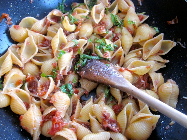 Pasta with Sun-dried Tomatoes and Red Wine myfavouritepastime.com_0709Add the red wine, reduce heat and cook until absorbed. Meanwhile boil pasta in plenty of salted water as per packet instructions until al dente. Drain thoroughly and reserve 1 cup pasta water.