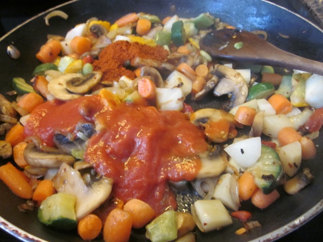 • 2-3 cups mixed vegetables (I used mushrooms, carrots, potatoes, French beans and zucchini)