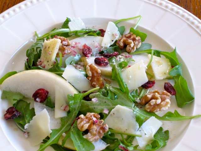 Yum! I am in the LOVE arugula category! Too bad the season can’t last longer in our garden. It was so nice to be able to go outside and pick it fresh! Love the pears and cranberries too. The dressing looks wonderful as well.
