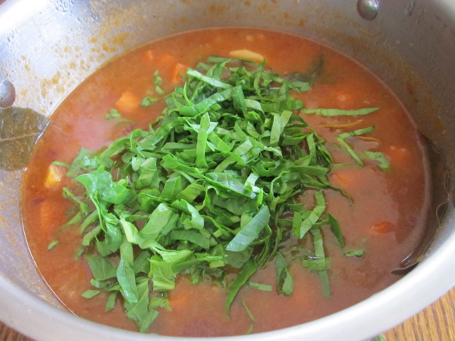 6. Just before serving, remove bouquet  garni and bay leaf, add the baby spinach and let simmer 2 minutes then serve, with steamed rice, or your preferred carbohydrate.
