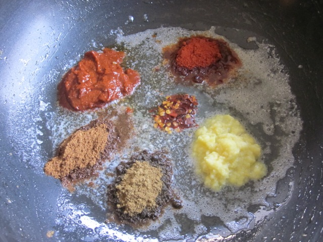 Cook the spices: In the same skillet, melt 2-3 tablespoons butter over medium-high heat. Add the tandoori paste, ginger, hot pepper, cumin, paprika and garam masala,
