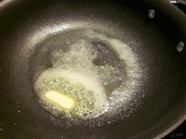 Heat 1-2 tablespoons butter in a pan or skillet over medium high heat