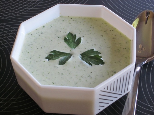 This soup is meant for busy people who want to eat a good soup that can be prepared in minutes. Once all ingredients are assembled, they are combined in a blender and blended, till smooth. Seasoning is done to suit your palate then the soup is chilled for several hours. If you want to have this soup for lunch, prepare it the night before and chill overnight. The soup tasted very good. What more can I say? I love the hint of mint and onions, and sour tinge of lemon. I wouldn’t trade this soup for anything! I wish you a fabulous weekend!